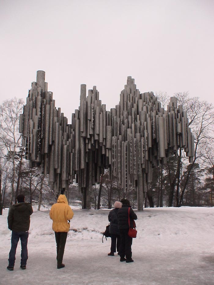 Kiliseden sonraki durağımız şehrin biraz dışındaki Sibelius Parkı. Finlilerin ulusal bestecisi olan Jean Sibelius’a ait bir anıt bulunuyor parkın içinde. Burası Helsinki’nin olmazsa olmazı değil, vaktiniz varsa görülebilir. Sibelius anıtı malzeme ve dizaynının değişikliği ile göze çarpıyor. Orgu tasvir eden irili ufaklı metal borularla yapılmış modern bir anıt. Bunu da daha önce şubat ayındaki ziyaretimizde hava karlıyken fotoğraflamıştık.