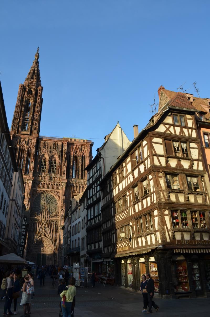 Avrupa'nın hemen her şehrinde mutlaka her turistin görmek istediği en büyük ve önemli kilise vardır ya, işte bu kentte orası Strasburg Notre Dame Katedrali (Cathédrale Notre Dame de Strasbourg). Yapımına 1015 yılında başlamışlar ama tamamlanması 1439 yılında tamamlanabilmiş. O dönemde 142 metre uzunluğu ile dünyanın en yüksek binasıymiş. Kentin tam kalbinde yer alan Gotik katedralin kulesine çıkabilir ve şehir manzarası izleyebilirsiniz. Katedralden çıktığınızda mimarisi ile dikkat çeken ve şehrin en eski evi olan Kammerzell Evi bulunuyor. 1427 yılında Alman mimarisi ile dikkat çeken ev bugün otel ve restoran olarak hizmet veriyor. Katedral ve çevresi gezimizde gördüğümüz Gutenberg Meydanı (Palace Gutenberg) ve meydandaki Gutenberg Heykeli (Modern matbaacılığın babası) sonrası restoran ve dükkanların arasından ağır ve keyifli adımlara masal dünyasının tam içine gireceğimiz yere yürüyoruz.