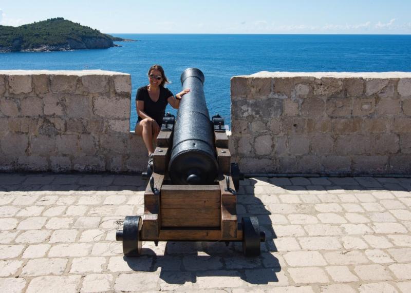 Old Town’un Pile Gate kapısından çıkıp biraz ilerleyince solda deniz kenarında Lovrijenac Kalesi var, orayı da mutlaka görün giriş 30 kn ya lokal para ya da kredi kartı kabul ediyorlar (Old Town duvarları için bilet aldıysanız gerek yok), herhalde kalabalık turlarda başka para birimleri ile uğraşmamak için euro almıyoruz işareti koymuşlar. Kale 37 metre yüksekliğinde ve kayaların üzerine kurulmuş, buraya çıkınca Old Town’un görüntüsü de harika, ayrıca kalede gözünüze tanıdık gelecek birçok Game of Thrones sahnesinin çekildiği yer var. Tam karşımızda Old Town’un duvarları giderek kalabalıklaşmasına rağmen biz hemen hemen hiç kimse yokken kaleyi gezdiğimiz için birçok da fotoğraf çekme şansına sahip olduk. Kalenin en üstünde yer alan top ise çok heybetli görünmesine karşın hiç ateşlenmemesi ile ünlüymüş.