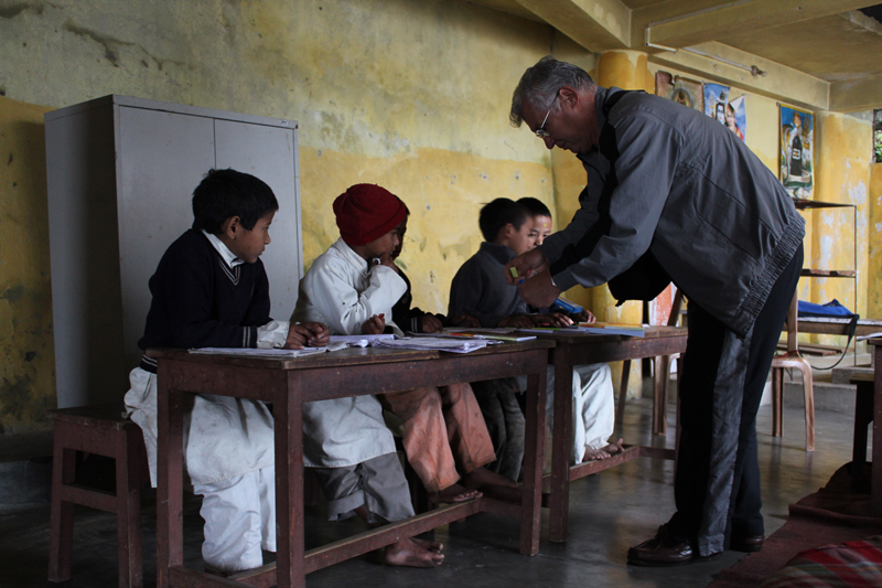 Tapınağın 1 kat altında tek oda içinde 10 çocuğa bir öğretmen tarafından dini eğitim veriliyordu. Yanımızda getirdiğimiz defter, kalem ve silgileri öğretmenden izin alarak çocuklara dağıttık.