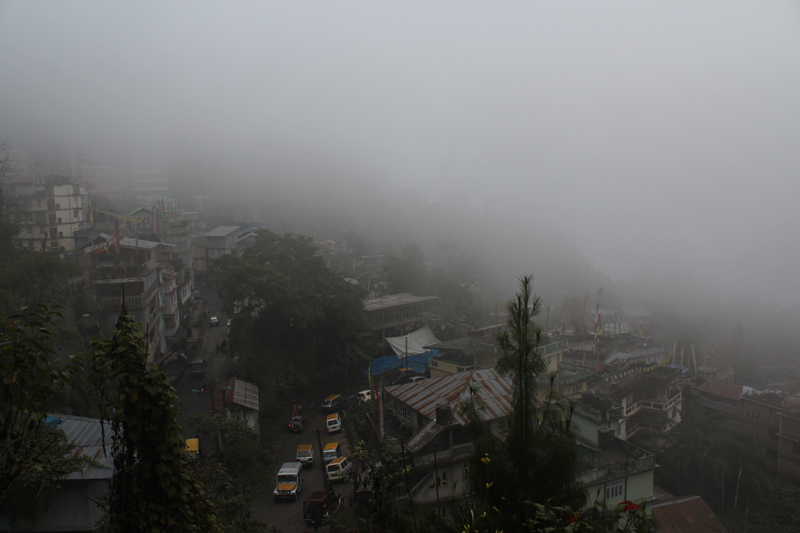 Tapınaktan üzerine sis çökmüş kenti izliyoruz. Etkileyiciydi.
