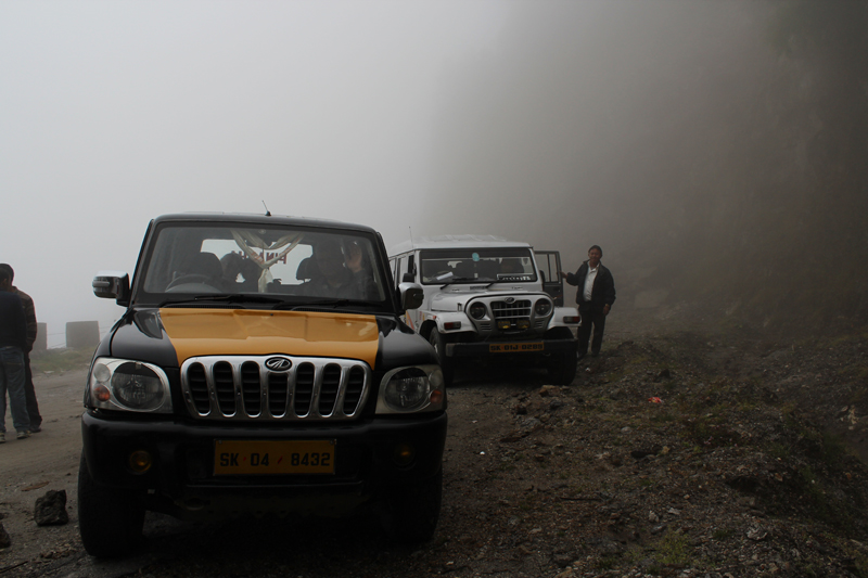 Tsomgo gölüne gidebilmek için önce izin alınıyor. Kişilere alınan izin haricinde oraya çıkan arabaların da izin belgesi gerekli, bu yüzden arabamızı değiştirip 4 çekerli izin alınmış bir başka araca transfer oluyoruz.