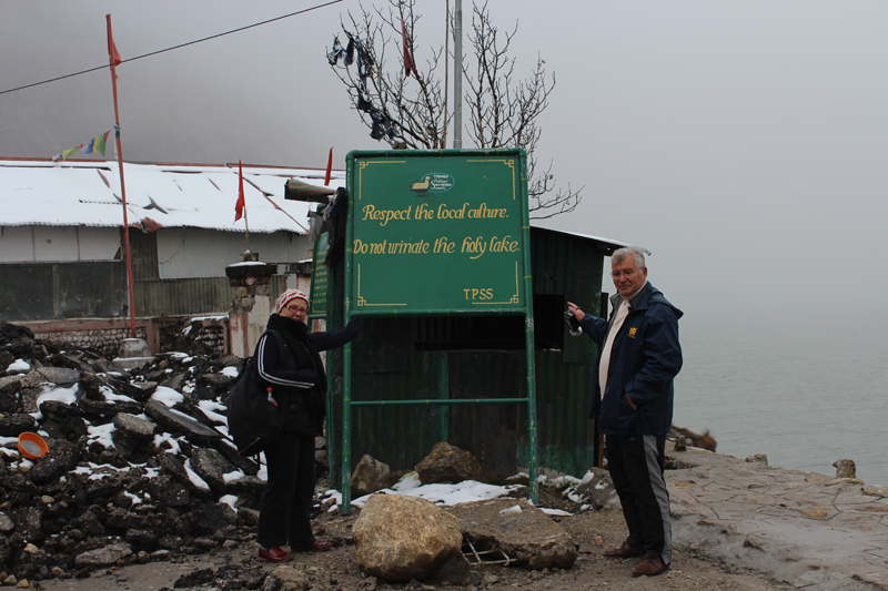 Gölün çevresindeki bazı noktalarda “Yerel kültürümüze saygı gösterin. Lütfen kutsal göle işemeyin” levhaları konmuştu. Haklılar zira bölge halkı, özellikle erkekleri tuvaleti geldiği an her yere yapıyor.