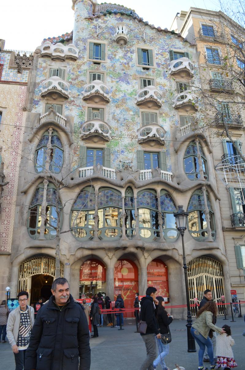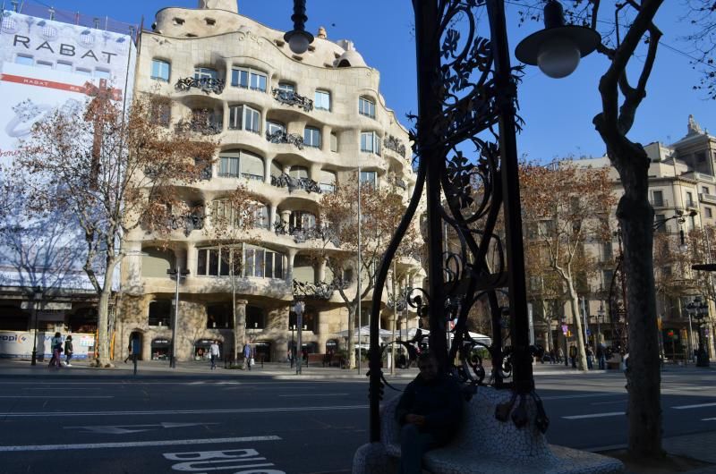 Şimdi sırada yine Gaudi'nin eserlerinden Casa Battlo ve Casa Mila (La Pedrera) evleri var. Evler, lüks mağazaların bulunduğu meşhur Passeig de Gracia caddesinin üzerindedir. Birbirlerine 5 dakikalık yürüme mesafesindedir. Sizde bizim gibi Park Güel'den sonra gidecekseniz metro "Diagonal"de inin. Ulaşım için metro L2-3-4 "Passeig de Gracia"da ya da L3-5 "Diagonal" da inin. Otobüs için; 7, 16, 17, 22. Casa Battlo giriş 18.15 €, Casa Mila giriş 16.50 €. Doğrusu biz ikisine de girmedik ama evlerin önlerindeki sokak lambalarının altında, fayanstan yapılmış oturma yerlerine oturduk ve evleri seyrederek geçirdik. Bu arada bir tüyo verelim, üstüne oturduğunuz seramikli o yer de Gaudi'nin eseri ve altıda ocak gibidir. Gaudi, insanlar kışın da eserlerimi incelesinler diye ocak şeklinde yapmış ki o zamanlar gerçektende içine yanan kömür koyuyorlarmış yani fırının üstüne oturup seyrediyorlarmış. Önce Casa Mila sonra Casa Battlo'yu gördükten sonra denize doğru yürüyoruz.
