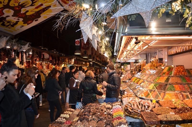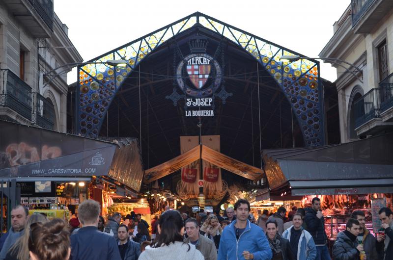 İlk durağımız önce caddenin yaklaşık ortalarında ve sağda yer alan meşhur pazar (Mercat de la Boqueria).