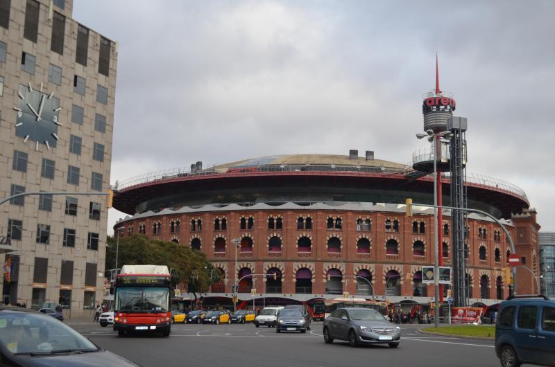İspanya Meydanından (Palaça Espanya) başlayarak şimdi de farklı bir bölgeyi dinlenmiş olarak gezmeye başlayacağız, yine yoğun bir gün bizi bekliyor. Metro L1-3-8 "Espanya" istasyona geliyoruz, önce hemen hemen bütün Barselona kartpostal veya fotograflarında yer alan o görüntüyü biz de yakalamak istiyoruz, bu nedenle doğruca Arena AVM'ye yöneliyoruz. Burada eskiden boğa güreşleri yapılırmış ancak Katalanlar kendilerini İspanyol olarak görmediklerinden bu geleneği Barselona'da kaldırmışlar, bu büyük boğa güreşi arenasını da AVM yapmışlar. O güzel görüntü için AVM'nin en üst katına çıkmamız gerekiyor. Siz isterseniz 1 € karşılığında AVM dışındaki asansörü kullanabilirsiniz ama biz içeri girip mağazaları biraz kolaçan edip, yürüyen merdivenler ile çıkmayı tercih ediyoruz ve o meşhur manzara şimdi karşımızda. Ters istikamette ise Joan Miro Parkı içerisinde Joan Miro'nun Kadın ve Kuş heykellerini yine terastan görüyor ve Arena AVM'den çıkıyoruz.