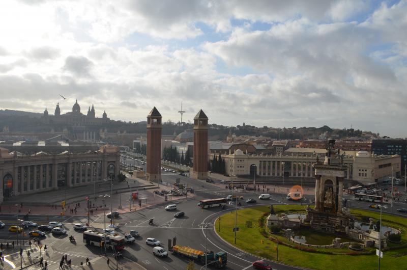 Şimdi bu güzel manzarayı bir de yürüyerek yakından tanıyacağız. Önce meydanda Josep Maria Jujol tarafından tasarlanan ve İspanya'nın üç büyük nehrini temsil eden anıtı inceliyip, Venetion Kulelerine yöneliyoruz. Bulvar başındaki 47 metrelik bu iki çan kulesi, Venedik'e giden gezginlere yabancı gelmeyecektir. San Marco meydanındaki Çan kulesi örnek alınarak yapılmıştır. İki kulenin arasından Magic Fountain yanından geçerek Katalonya Ulusal Sanat Müzesi'ne (MNAC) geliyoruz. Dünyaca ünlü bu sanat müzesinde çok sayıda, barok, klasik ve modern resim-heykel örnekleri mevcut. Giriş: 6.5 €, terasa çıkmak için de 3 €. metro L1-3-8 "Espanya"