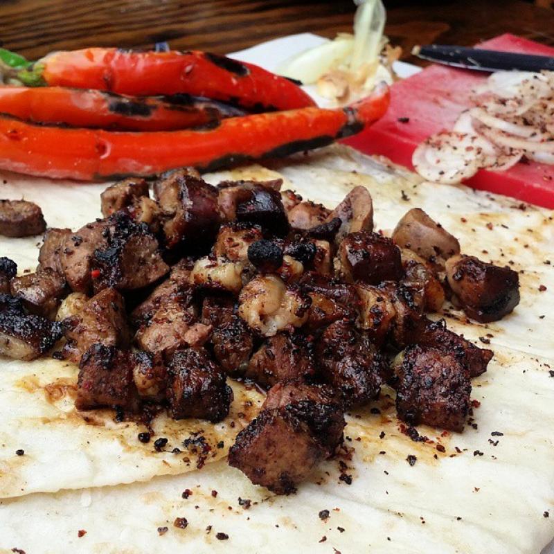 Kebap, mangalda meşe kömürüyle pişiriliyor. Genelde koyun ya da kuzu eti kullanılıyor. Et, ya kuşbaşı doğranır ya da kıyma hâlinde kullanılır. Kuşbaşı; salça, sarımsak ve baharatlardan oluşan sosta bekletilerek terbiye edilir ve o şekilde tüketilir.