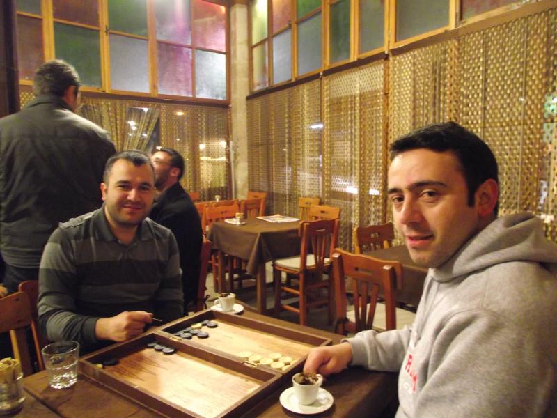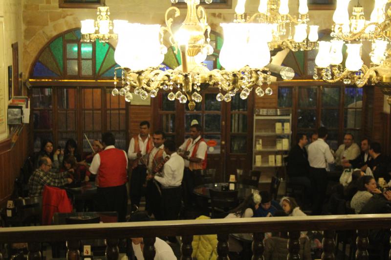 Gaziantep deyince aka gelen ilk yerlerden biri de Tahmis Kahvesi. Rivayete göre 1640 yılından beri açıkmış. Antep'e ilk gelişimde duymuştum ama gidememiştim, 2013 yılındaki ikinci ziyaretimde gitme şansım oldu. Ortam görsel olarak müthiş; her yer ahşapla kaplı, büyük avizeler, arkada çalan otantik bir müzik... Yöreye ait olan Menengiç kahvesi ikram edilen en önemli ürünleri, ayrıca nargile de mevcut. Bizim şansımıza olsa gerek, içeri girdikten 5 dakika kadar sonra ellerinde enstrümanlarıyla bir grup müzisyen içeri girdi, yaklaşık yarım saatlik mini bir konser verip gittiler.