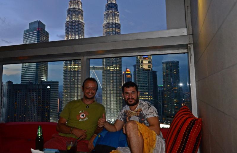 Bu arada Gökhan Hepşen kardeşim de Kuala Lumpur’da. Kendisi çok beğendiğim ve takip ettiğim bir gezgin kardeşim. Artık aynı şehirde iki Türk gezgin olarak buluşmanın zamanı da geldi. Facebook üzerinden yazıyorum kendisine ve yazım aynen şu: "Gökhan şu an Sky Bar'dayım ve burası harika bir yer. Mutlaka görüşelim gel seni bekliyorum". Sağolsun adam gibi adam Gökhan. Kendisi beni kırmayarak davetime icabet ediyor. Yalnız onu beklerken az bir uzanıyım daha gelmez derken bir gözümü açtım başımda oturmuş gözlerinin içi gülüyor. Neredeyse eliyle koymuş gibi buluyor beni. Üstelik çoktan benim o uzanmış uyuklayan halimi de fotoğraflamış. Elbette güzel sohbetler ve güzel bir gezgin buluşması yaptık. Dopdolu 3 gün Kuala Lumpur seyahati ve artık benim yarın Kuala Lumpur’dan ayrılma vaktim geldi. Yeni rotam; Penang Adası. Penang’ta görüşmek üzere...