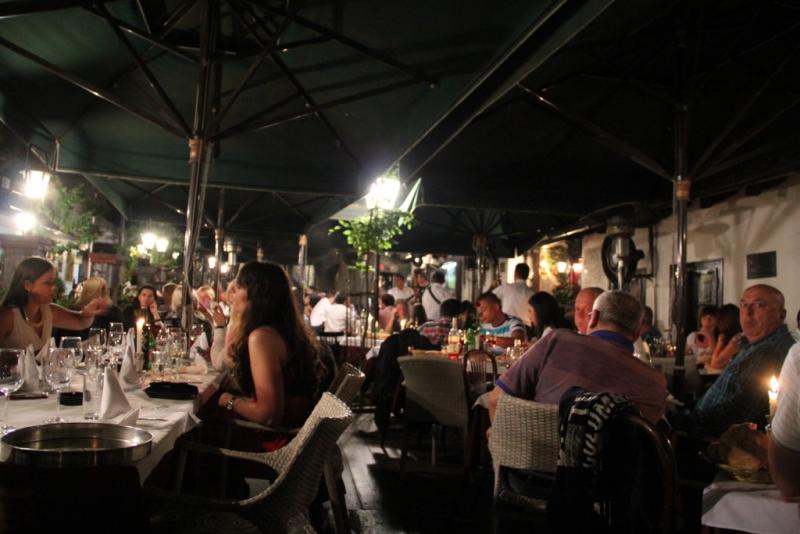 Rezervasyon yaptırdığımız meşhur '3 Şapka' restoranımıza geldik. Sokaktaki en şık yerlerden biri olduğu belliydi. Daha büyük ve daha kalabalık bir mekandı. Fiyatlar bir önceki gittiğimiz yer ile çok çok farklılık göstermiyordu açıkçası. Ben pek etten anlamam ama arkadaşlar buranın köftesinin daha iyi olduğunu söylediler. Garsonumuzda gayet güzel Türkçe bildiğinden bize ne domuz eti ne kuzu eti hızlıca anlattı. Müzisyenler de yine bir 'Üsküdar'a gider iken', 'Ya Mustafa Ya Mustafa' vb. şarkılar çalarak yemeğe eşlik ettiler.