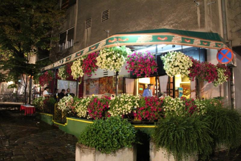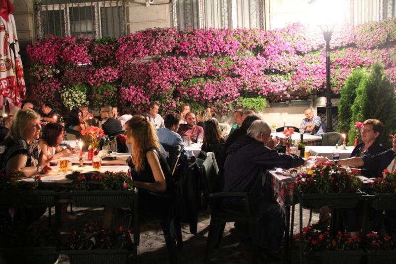 Sokağın çiçekli ve birbirinden güzel restoranları ile büyük porsiyonlu lezzetli etleri ilk günün yağmur kasvetini hemen unutturdu. Grup üyeleri yukarıdaki fotoğraftan 'ah keşke benim de böyle fotoğrafım olsa' demekten kendini alamazken, Özge bu pozun keyfini sürdü :) Ben ise sürekli yedim :) Belgrad'da 'Kuvvetli Tabanlar' yerini 'Kuvvetli Boğazlar'a bıraktı belirteyim. Cici kebabı deneyebilirsiniz, bizdeki İnegöl köfte benzeri ama 2 katı büyüklükte bir porsiyonla geliyor. Biz kaymaklısını tercih ettik. Sırp salatası bildiğimiz domates ve salatalık ama üzerine lezzetli bir peynir rendeleniyor. Mönülerde zaten kuzu eti, dana eti ya da domuz eti mi yazıyor. Şimdiden afiyet olsun :) Bu arada hesabın hepsini ya nakit ya da kredi kartıyla ödeyebiliyorsunuz, ben karttan ödeyeyim sen nakit öde yok :) Fiyatlar ise diğer ülkelere kıyasla son derece uygun, kişi başı 10-15 Euro'ya tıka basa doyduk.