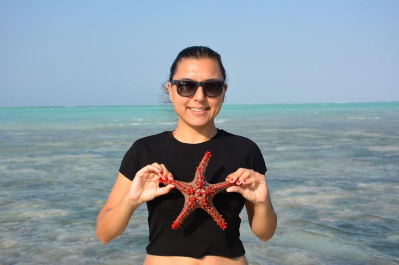 Mohammed Ali de aynı şekilde rahatsız edici olmayan bir şekilde yanımıza yaklaştı ve Nungwi bölgesinden bahsedip, çevredeki deniz yıldızlarını, deniz örümceklerini getirip onlarla ilgili bilgiler verdi. Hayatlarında hiç bu kadar büyük deniz yıldızları görmeyen bizler için oldukça ilginç bir deneyimdi. Hem deniz yıldızlarının erkek ve dişilerinin ne kadar birbirlerinden farklı olduklarını ve bizim deniz yıldızı olarak bildiğimiz, tam olarak yıldız şeklinde olanının erkek deniz yıldızı olduğunu da öğrenmiş olduk bu yeni arkadaşımızdan.