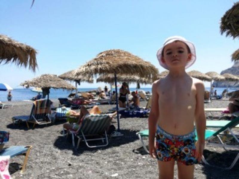 Plaj volkan patlamasıyla siyah kumlarla kaplanmış. 2 kişilik şezlong ve şemsiye 7,5 Euro. Deniz boy hizasını geçerken kum rengi açılıyor. Deniz derinde berrak ama ülkemizin denizine değişilmez. Oui köyüne biz gidemedik güzel bir yer dediler ama zaman kalmamıştı.
