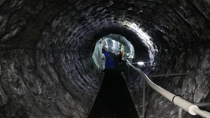 3883 metre yüksekliği ile Avrupa’nın en yüksek teleferik istasyonunda Matterhorn Glacier Paradise’da teleferikten iner inmez karşınıza çıkan dehliz aslında buzulun içine oyulmuş tüneller. İçeri girer girmez ilk önce sinema salonuna gidip de sürekli oynayan tanıtıcı filmleri izlemenizi tavsiye ediyoruz. Hem Matterhorn’a ilk çıkışın etkileyici hikâyesini, hem de buzulla ilgili bilgileri anlatan kısa belgeseli zevkle izleyeceksiniz. Buradan sonra dehlizlerde gezmeye devam ettiğinizde karşınıza çeşitli herkeltraşlar tarafından yapılmış buz heykeller ve minyatür buzul parçaları çıkıyor. Buzul genişlemeye devam ettiği için sık sık müdahale edip bazı parçalarını almaları ve içine oyulmuş sarayın sağlıklı şekilde yerinde durduğundan emin olmaları gerekiyor. O yüzden içeride işçiler ve küçük buz kırma makineleri görmeniz de mümkün.