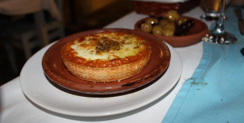 Saganaki de ilk defa denediğim ve âşık olduğum bir diğer tat oldu. Otlu peyniri pizza gibi pişirip servis ediyorlar ve erimiş olmasına rağmen bir arada duran o peynirin tadı damağınıza bayram havası yaşatıyor.