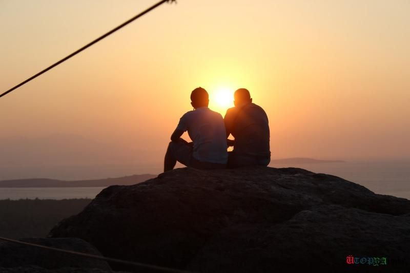 Eğer Ayvalık'a yolunuz düşerse mutlaka gitmeniz gereken yerlerden birisidir: Şeytan Sofrası. Tepeye çıkıyorsunuz ve gözünüzün alabildiğine yeşil-mavi her yer. Güneş, Yunan adalarında yavaşça kaybolurken gökyüzü pastel renklerle boyanıyor. Kayalıkların üstüne çıkıp bu renklerin içinize dolduğunu hissedebilirsiniz.