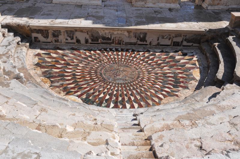 Kibyra'nın ilkleri bununla kalmıyor. Odeon binasının orkestra salonunun zeminlerinde opus sectile yöntemiyle renkli mermer döşenerek inşa edilen medusa figürlü mozaik de dünyada zemine döşenmiş ilk Medusa figürü olarak kabul ediliyor.