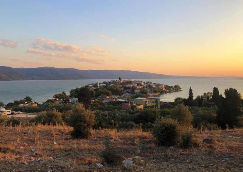 Bence günbatımının Gölyazı’da izlenebileceği 2 güzel nokta var: birincisi Uluabat Gölü kenarı, ikincisi de burası yani Gölyazı ve Uluabat Gölü’ne hakim konumdaki Zambak Tepe. Biz de bu tepeye aslında tam zamanında çıktık. Ancak güneş adanın ilerisinden ya da direkt denize batmıyordu. Adadan biraz daha uzak bir alanda battığı için öyle süper bir manzara biz yakalayamadık. Ama biliyorsunuz ki bu yılın her dönemi değişir. Biz gittiğimizde Ağustos başıydı. Ancak güneş tam batarken oluşturduğu renkler göz kamaştırıcıydı.