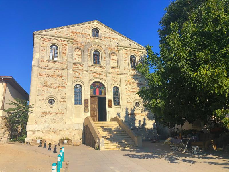 Önce arabamızı park edelim ve ada bölümüne geçmeden yolun solunda tüm ihtişamıyla kendini belli eden Aziz Panteleimon Kilisesi’ni gezelim. 19. yüzyıl sonlarına tarihlenen Aziz Panteleimon Kilisesi, Anadolu Rum Ortodoks kiliselerinin en özel ve özgün örnekleri arasında yerini almış.
