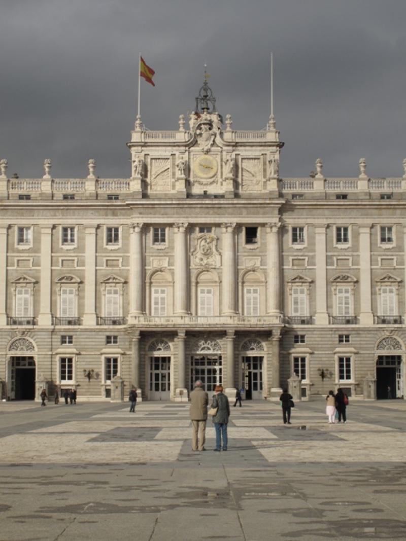 Bir yan alışveriş caddesi olan Calle del Arsenal’i dolaşarak, Madrid’in opera binası Teatro Real’e ve küçük meydanına ulaşıyoruz. Altı cephesi bulunan binanın görünen katları haricinde yer altında da 6 katı bulunuyormuş. Daha sakin ve elit görünen bu küçük meydanı geçiyoruz ve sonrasında Plaza de Oriente’nin parklarının arkasında görkemli Palacio Real (Kraliyet Sarayı) bizi karşılıyor.