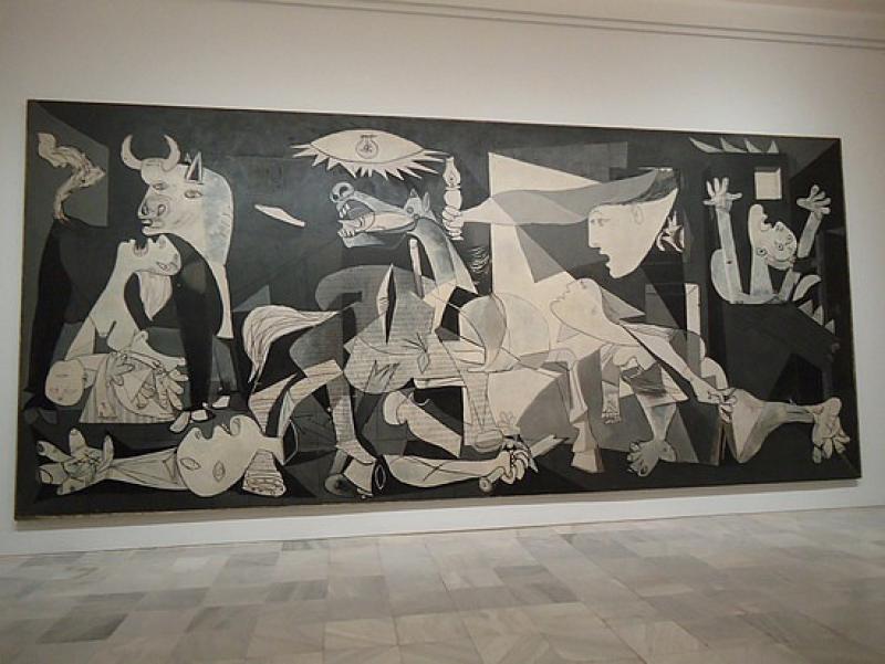 İspanyol sanatının Picasso, Miro, Dali gibi sürrealist ressamlarını ağırlayan ve özellikle dünyanın en çok konuşulan resimlerinden biri olan Picasso’nun La Guernica adlı eserini çocuklara göstermek için Centro Arte Reina Sofia Müzesi’ne giriyoruz. İspanyol tarihindeki iç savaşı anlatan bu dev boyutlu tabloda, Yunan mitolojisinde insan eti yiyen boğa başlı yaratık Minotaur betimlenmiş. Picasso’nun New York’a gitmek ve uzun süre orada sergilemek zorunda kaldığı bu tablo ile karşılaştığımızda, bir anaokulu sınıfını komple yere oturmuş tabloyu seyrederken ve anlatılanları dinlerken buluyoruz. Resim sanatının önemli bir modern temsilcisi olan La Guernica’yı, bizim çocuklar ilkokulda da olsa görmüş oldukları için mutlu oluyorum.