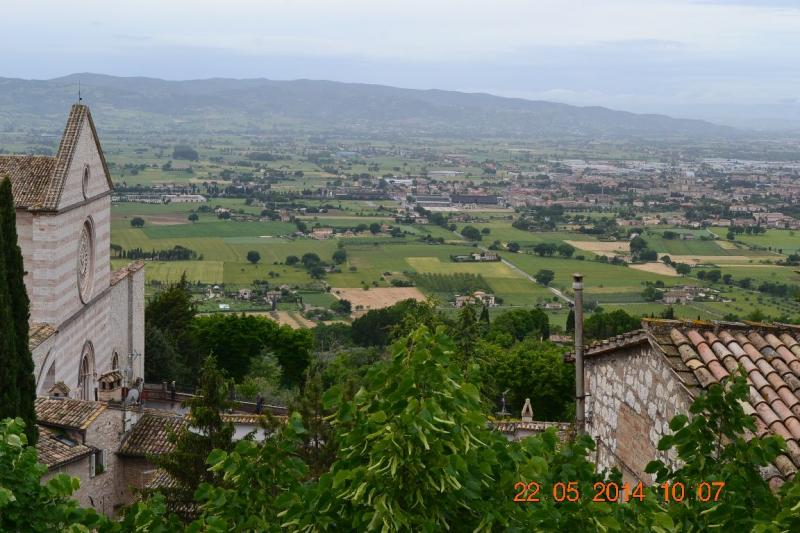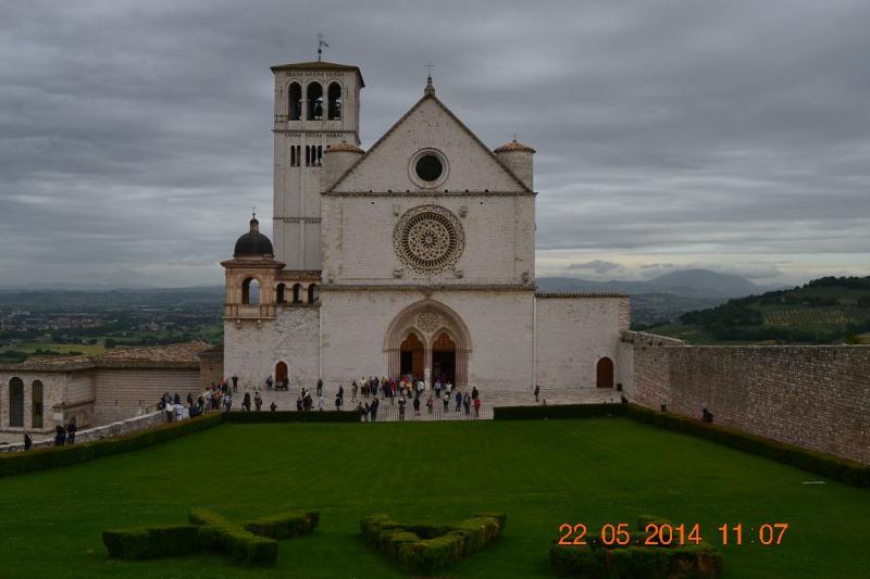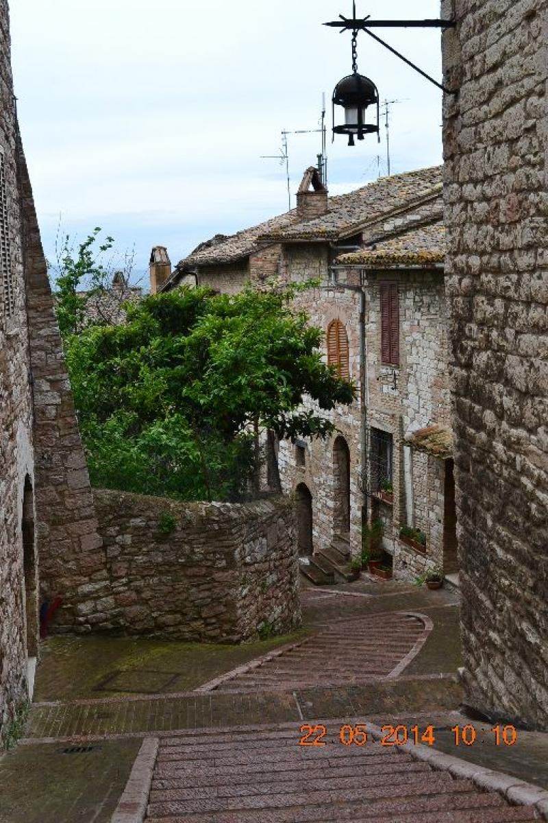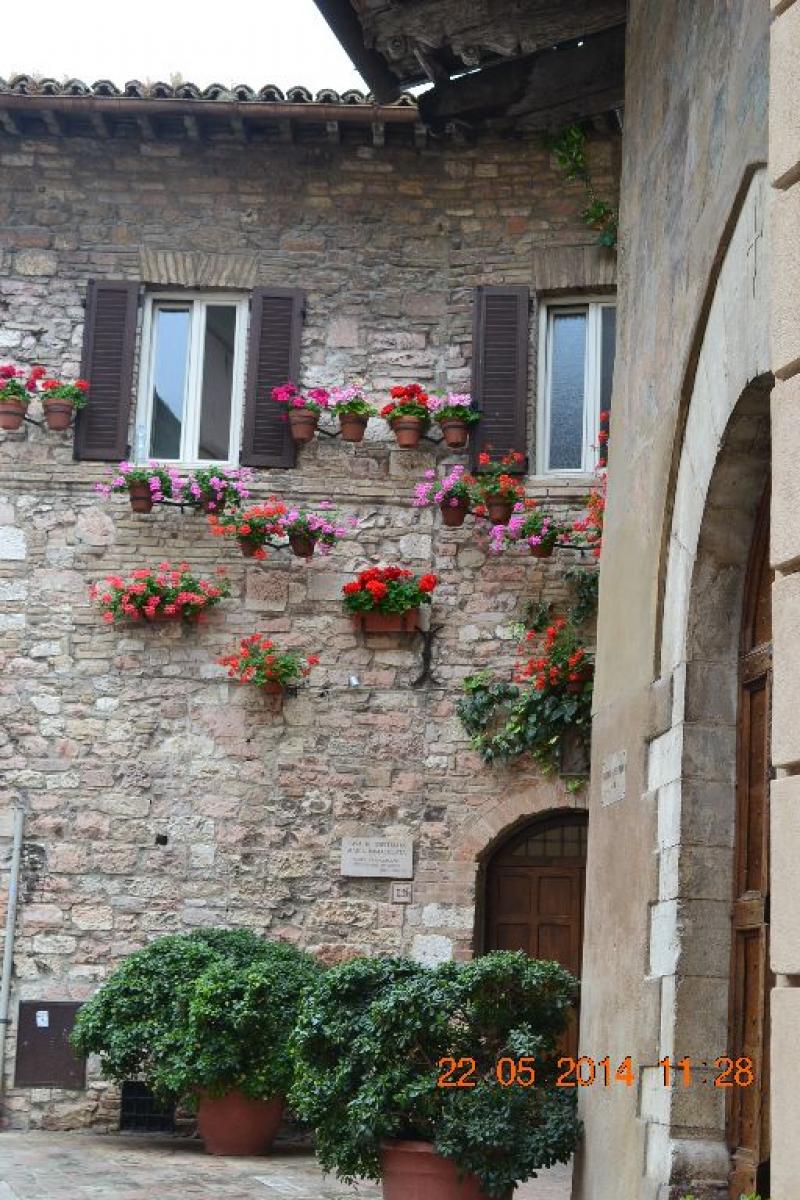 Ertesi gün Perugia’ya 12 km uzaklıkta, deniz seviyesinden 424 metre yüksekte, Umbria’nın kalbinde, bir tepe üzerinde bir sanat hazinesi ve UNESCO Dünya Mirası Listesi’nde küçük bir kasaba olan Assisi’ye doğru yola çıkıyoruz. Kasabaya yaklaşırken yukarı baktığımızda müthiş yapıların yoldan bizlere verdiği fotoğraflar yukarıda nelerle karşılaşacağımızın habercisi adeta… Yine balkonlarından sarkan müthiş çiçekler içindeki tarihi taş binaların dizildiği ağaçlar altında, sevimli dar sokaklardan yürümeye başlıyoruz.
