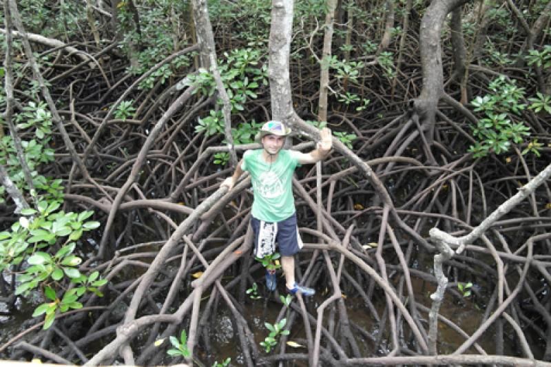 Daha sonra yürüyerek, ormanda suların yükselip alçaldığı bölgeye ulaştık. Su üzerinde yetişen mangrove ağaçların, suların çekilmesinden sonra ortaya çıkan kökleri görülmeye değerdi.