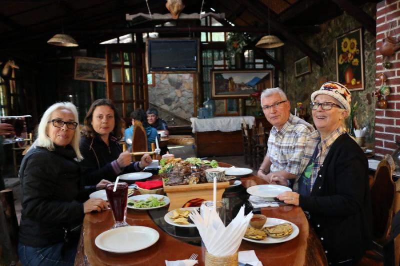 Daha sonra 1 saatlik yolculuk sonunda ızgara biftek, tavuk, domuz sucuk ve domuz köfteden oluşan öğle yemeğimizi yedik. Domuz grup içinde çok rağbet görmese de diğer ızgaralar bolca yetti. Etin yanında avokado püresi, siyah fasulye ezmesi ve meyve suyu ile yemeğimizi tamamladık. Buralarda tropikal meyvelerden oluşan taze sıkılmış meyve suları çok çok güzel. Kesinlikle denemelisiniz.
