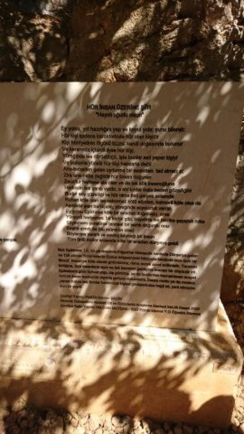 Yazılı denmesinin nedeni Hierapolis'te (Pamukkale) köle olarak dünyaya gelen ve özgürleştikten sonra ‘Hür İnsan’ şiiriyle bilinen önemli bir filozof Epiktetos’un kaya üzerine yazdığı şiirdir.