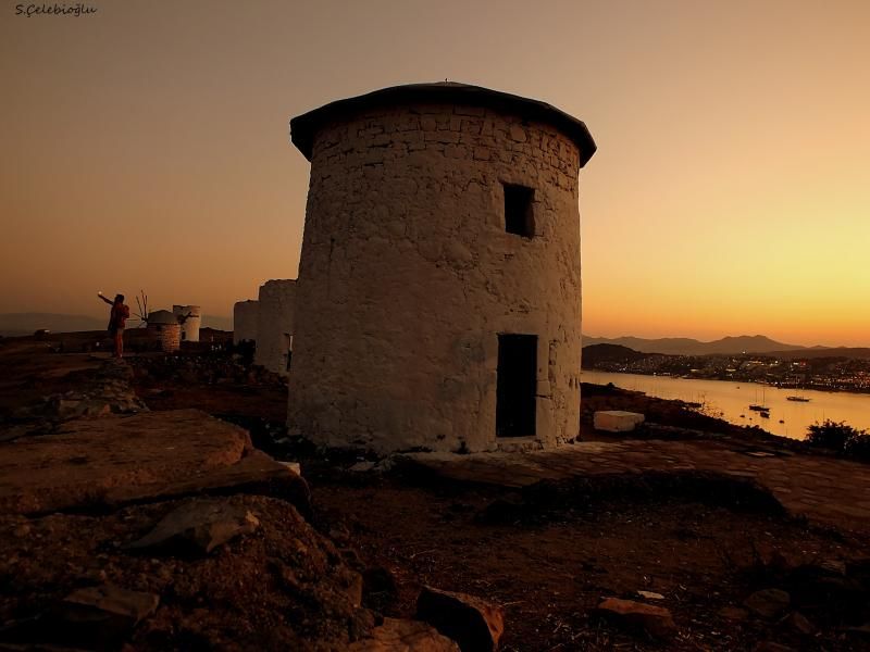 Bodrum’a gelince şehrin merkezinde esnafa şu soruyu sordum: Bodrum’un sembolü nedir? Yeni nesil cevap olarak daha çok “Bodrum Kalesi” derken orta yaş ve üzeri olanlar ağız birliği etmişçesine değirmenleri işaret ettiler. Ben de daha önceden fotoğrafçı arkadaşlarımdan mutlaka gün batımında buranın ziyaret edilmesi gerektiğini duymuş olduğum için Bodrum'daki bir gün batımını fotoğraf çekimi için değirmenlere ayırdık.