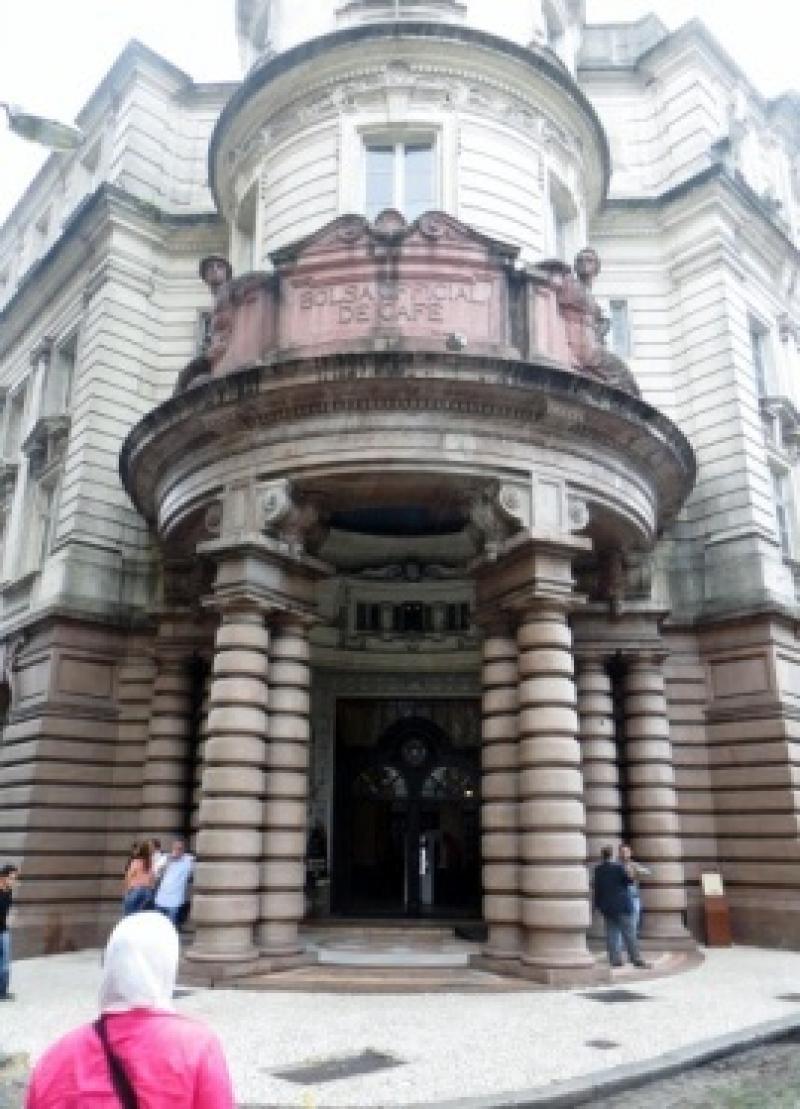 Burasından sonra biraz aşağıya doğru XV. de Novembro caddesi boyunca yürüyoruz. Şimdi sıra da kahve müzesi var. Bugün içeriye giriş bedava imiş. 1922 yılında inşa edilmiş olan 6000 metrekare büyüklüğündeki bu binanın 200 den fazla kapı ve penceresi varmış. Zaten bu civardaki bütün binalar bu mimaride ve hep korunmuş. İçeride eskiden dünyadaki kahve fiyatlarının belirlendiği ve tüccarların açık arttırma yaptıkları bir salon var.