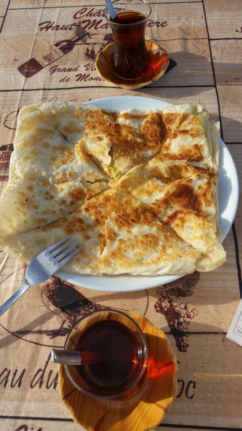 O söylediğim meşhur tepenin bulunduğu yerde Kadınlar Kooperatifi var. Yöre kadınları buradan kazandıkları ile ev ekonomisine katkı sağlıyor. Gözleme, çay, kahve vb. şeyler için ve tabi ki enfes manzarası için buraya gelmelisiniz. Biz burada gözleme ve çay tercih ettik.