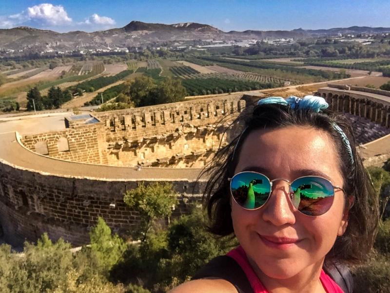 Antalya ilinin tiyatrosuyla meşhur bir antik kenti Aspendos. Yaz aylarında konserlerden adını sıklıkla duyarız bu tiyatronun. Bu kent, döneminde Akdenizin en zengin kentlerindenmiş. Oldukça büyük ve her yerini gezemedik fakat yüksek bir tepesine çıkıp manzaraya şöyle bir baktık. Tiyatronun hem tepeden hem de içinden ayrı bir güzelliği var. Giriş 30 TL ama müze kart geçerli.