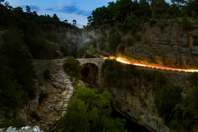 Köprülü Kanyon'un adındaki köprü kanyonda yer alan 2 adet tarihi köprüden geliyor. Onlardan biri bu. Üstünden arabanızla geçebiliyorsunuz. Tek araç geçebilecek kadar genişlikte bir köprü.