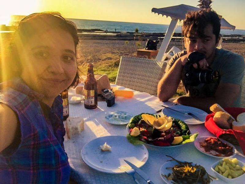 Mevsimden dolayı olsa gerek oldukça tenhaydı. Yoksa yaz mevsiminde burayı düşünebiliyorum. Sahilde manzaraya karşı kafeler, restoranlar var. Çimlerin üzerinde sandalyeler masalar çok cazip göründü oturmaya karar verdik. İyi ki de oturmuşuz; bir balık yaptılar bize, bir de ortaya salata lezzetinden parmaklarımızı yiyorduk az kalsın. Gün batımı da keyfimize eşlik edince keyfimize diyecek yoktu doğrusu..