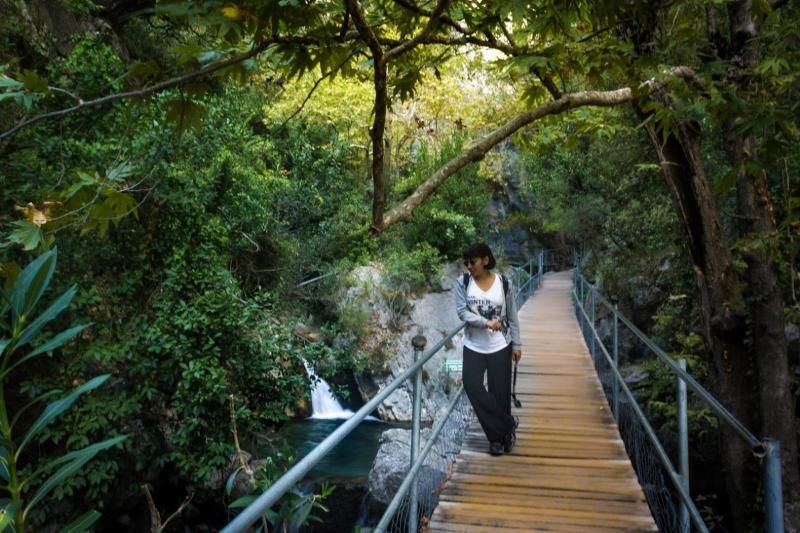 Büyük bir şelaleden dökülen suyun oluşturduğu göletler küçük şelaleciklerle birbirine bağlanıyor. Böylece kendinizi cennette gibi hissettirecek muhteşem manzaralar ortaya çıkmış. Bir yerin her bir köşesi mi büyüleyici olur diye soruyor insan kendine. Doğanın içinden ayırmayan doğal bir düzenleme yapılmış burada. Yürüyüş yolunda tabelalarla yönlendirmeler yapılmış. 1 saatten fazla süren patikalarda inişli çıkışlı yürüyüşler yapıyor, yeşilin her tonuna şahit oluyorsunuz. Yer yer ağaç masalar koymuşlar; buralarda oturup doğanın içinden bu yerin uzun uzun tadını çıkardık.
