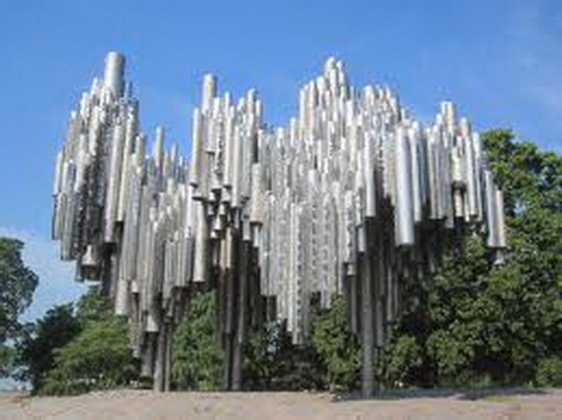 Helsinki'de ilk gördüğümüz yer Sibelius anıtı ve büstü oldu. Güzel ve büyük bir parkın içinde bulunuyor. Sibelius bir müzisyen. Ancak hayatı çok inişli çıkışlı ve zor olmuş. Finliler de çok sevdikleri bu müzisyenin büstünü (bu arada büstü aynı Nazım Hikmet'inkine benziyor) ve onun müziğini temsil eden uç boyutlu metal anıtı inşa etmişler. Anıtın içi de gezilebiliyor. Aynı zamanda anıttaki iniş çıkışlar, hayatının iniş çıkışlarını, yıpranmış olan metaller de Sibelius'un hayatının zorluğunu temsil ediyormuş.