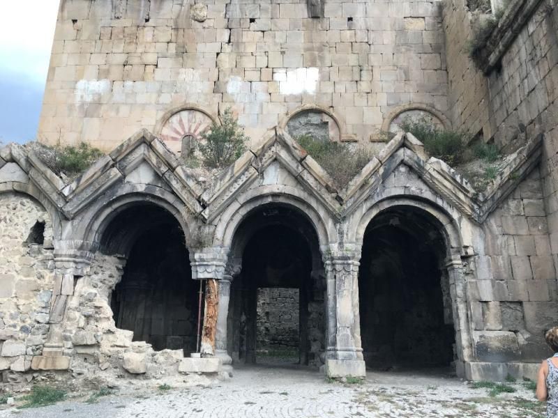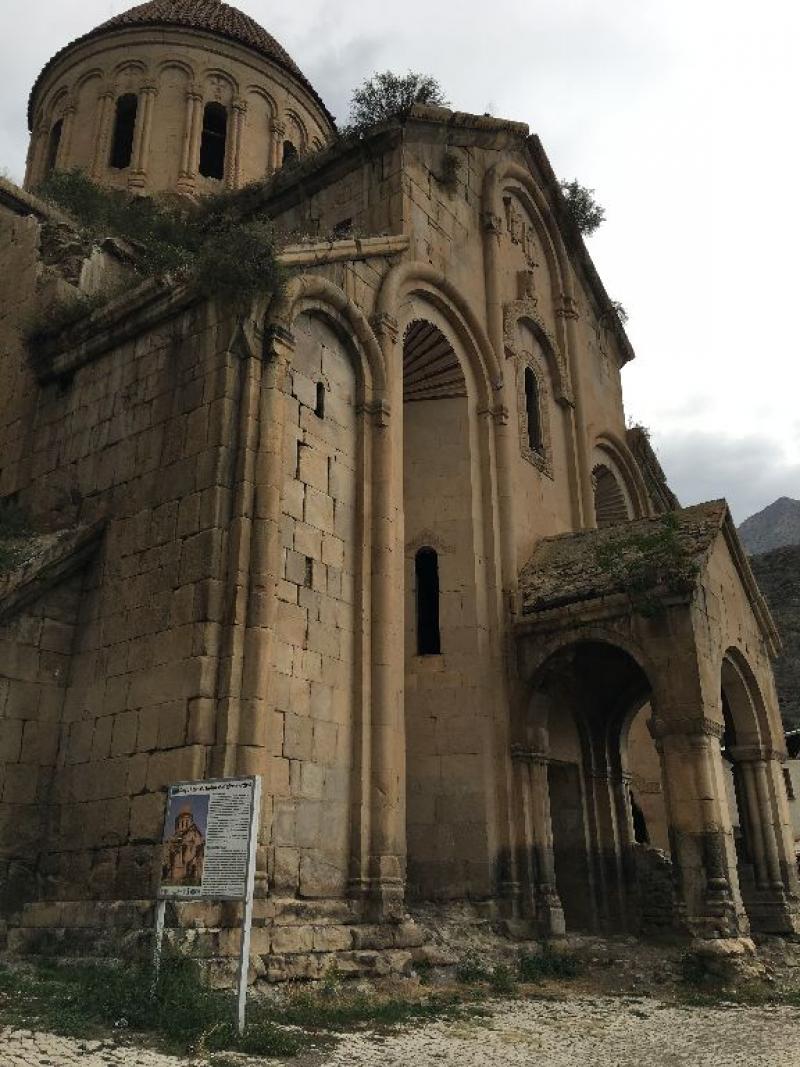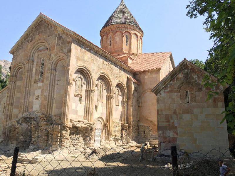 İşhan Köyü ve KilisesiYusufeli ilçesi, İşhan Köyü’ndeki manastırın yapımına Gürcü Kralı David zamanında başlanmış, 1027 yılında Bagratlı Kralı Magistros tarafından bitirilen manastırdan günümüze ancak Meryem Ana Şapeli ve 35 metre uzunluğunda, bir kubbe ile örtülmüş, bazilikal plan tipinde bir kilise ulaşmış. 19. yüzyılda Osmanlı-Rus Savaşları sırasında, Osmanlı ordusunun kışlası, sonrasında cami olarak kullanılan kilise 1987 yılında ise tescil edilerek “korunması gereken taşınmaz kültür varlıkları” arasına alınmış. Biz oradayken restorasyon halen devam etmekte olduğu için içine giremesek de dış cephenin ihtişamı bile yeterli oldu. Kilisenin içi 966 yılında duvar resimleri ile bezenmiş olsa da günümüzde sadece kubbe ve güney haç kolundaki resimler kalmış.
