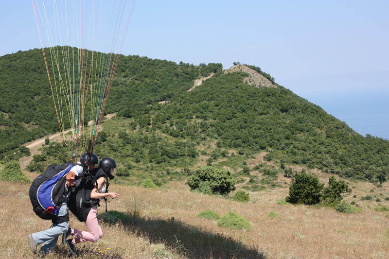 Sabah uyandığımızda ilk işimiz yamaç paraşütü yapmak. Biraz geç uyandığımızdan kalkıp apar topar Uçmakdere’ye yol alıyoruz. Buluşma yerimiz iniş alanı. Bu arada belirtmem gerekir ki hiçbir Tekirdağ’lının kilometre hesabına güvenmeyin. Ya onlar mil üstünden hesap yapıyorlar, ya da benim kilometre sayacım bozuldu. Yan yana oturan insanlara bile aynı yeri sorduğunuzda birisi 30, diğeri ise 80km diyebiliyor çünkü. Üstelik 30 km çok virajlı bir yolun 15 dakika süreceğini iddia edenler bile oldu. Tekirdağ yöresinde neden bilmem tabela eksiği olduğundan yolda gördüğümüz konuşabilen her canlıya iniş alanına ne kadar kaldığını sorduk. Aldığımız en güzel cevap; köprü, dere ve çeşme kombinasyonunu görünce sağa sapın cevabı oldu. Verdikleri kilometre hesabına güvenmediğimden bu kombinasyonu yakalamak daha mantıklı geldi. Sonuçta yaklaşık 25 dakika sonrasında iniş alanına vardık. Kadir bey’le buluştuktan sonra teker teker yukarı çıkıldığından önce ben attım kendimi kurban olarak. Arabayla 10 dakika mesafedeki tepeye çıktık. Malzeme hazırlığı da bitince uçmaya hazırım artık. Kadir bey bana ne kadar şu yöne koş dese de ben paraşütün çekim kuvvetinden kurtulamadığımdan sadece sağa sola saçma savrulma hareketleri yapabildim. Bana rağmen havalanabildik. Adam çuval taşısaydı muhtemelen onun için daha kolay olurdu. Ama havalandıktan sonra gerçekten muhteşem bir his, ayaklarınız yerden kesilmiş, havadasınız, yerçekimi hissetmeden yaşayabileceğiniz bir 10 dakika. İnişe geçerken denizin üstünde birkaç tur dönmeniz gerekiyor. Valla ne yalan söyleyeyim ben gözlerimi kapattım, kusmaya ramak kalmıştı çünkü. Ben indikten sonra sıra özgeye geldi, o sırada araç sorunu çıktığından hemen paraşütü paketleyip attık arabaya. Transporter gibi olmasa da sonuçta zirveye ulaşmayı başardım. Aynı paraşütün serilmesi hazırlıklar ve sonrası kabus koşu… yine de özge koşması gereken hedefi benden daha iyi tutturdu, ve havalanabildiler. arkalarından birkaç kare çekme çabam sonrası inişlerine yetişebilmek için bayırdan aşağı saldım ben de kendimi. İniş alanına vardığımda Kadir bey bir sonraki uçuş için tepeye doğru yola çıkmıştı bile.