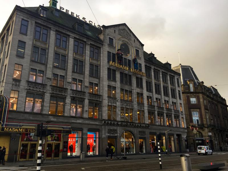 Madame Tussaud ve eski belediye sarayı DAM meydanında bulunuyor.Hatta gotik bir bazilika olan Nieuwe Kerk de meydanın havasına katkıda bunuluyor. Madame Tussaud müzesindeki balmumu heykellerinin gerçekçiliği vitrinlerine koydukları heykellere bakınca kendini belli ediyor zaten. Burayı sabahın çok erken saatlerinde gördük otelden çıktığımızda. Hiç kuyruk yoktu tabi o nedenle.