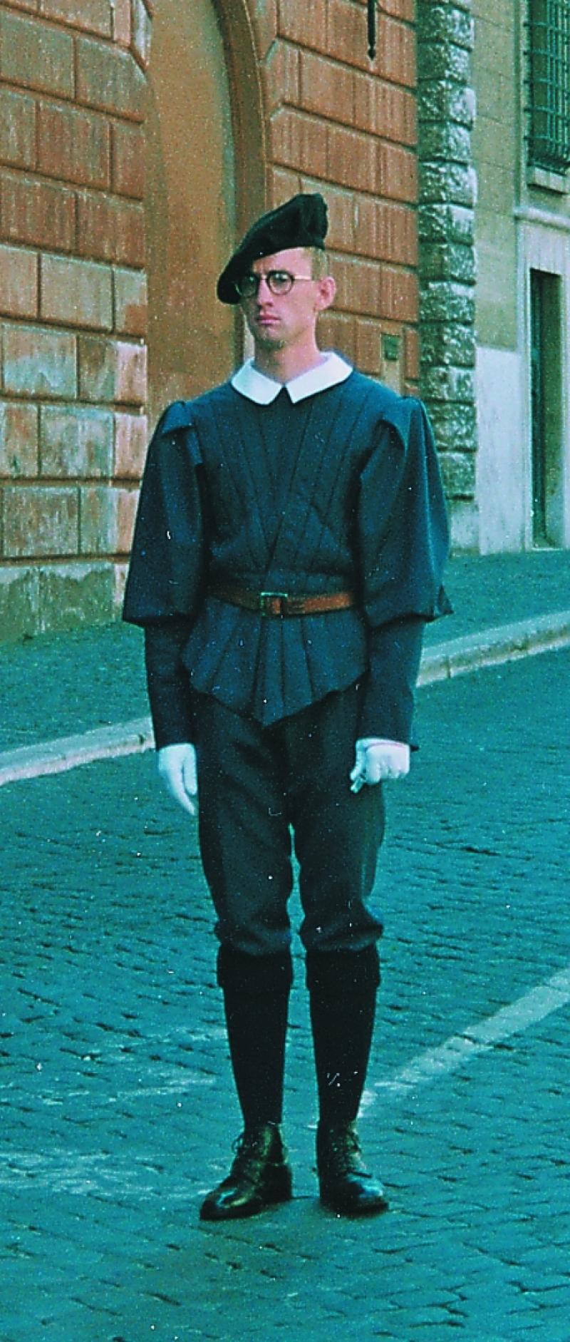 Kilisenin çevresinde, “Vatikan ordusu”nu oluşturan İsviçreli muhafızlarla karşılaşıyoruz. Boyları en az 1.75 olmalıymış muhafızların. İnanılmaz hoşluktaki rengârenk üniformalarının Rönesans sanatçısı Michelangelo tarafından çizildiği rivayet olunuyor. Yine rivayete bakılırsa, Vatikan muhafızlığı babadan oğula geçen ve maaşı hayli dolgun mesleklerdenmiş.