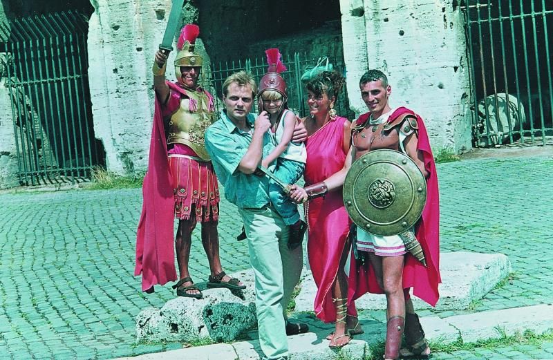 Colosseum çıkışında, üzerinde rengârenk “Roma” yazılı dizi dizi şapkanın bulunduğu tezgâhın hemen yanında bir de ne görelim! İki Romalı asker turistlere kılıç çekmesin mi? “Bre aman!” demeye kalmadı, kılıçlı kalkanlı Romalı askerler turistlerin elinden küçük çocuklarını kapıverdiler! Ancak, turistler hiç istiflerini bozmadan ağlanacak hallerine gülüyor, üstüne üstlük bir de fotoğraf çekiyorlar! Biraz yaklaşınca, bunların “turizm amaçlı Romalı asker!” olduklarını anlıyoruz. Kıyafetten başka sermaye istemeyen, eli kılıç tutan her vatandaşın rahatlıkla gerçekleştirebileceği bir turizm faaliyeti ile karşı karşıyayız.