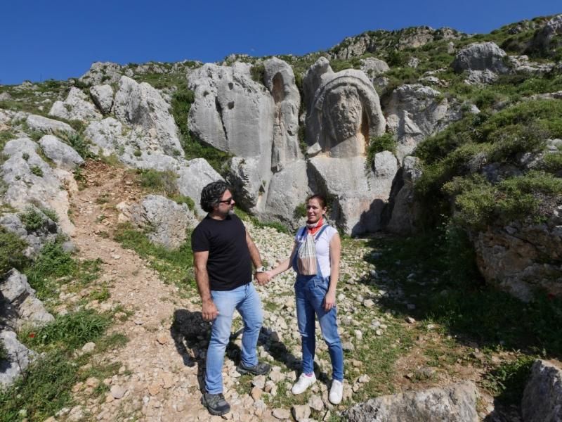 Tabii günümüzde tünelden geçiş yok. Kilisenin dışına çıktığımızda iki küçük rehber bize eşlik ediyor: Vedat ve kuzeni Asker. Bu iki çocuk bize hem bölgeyi anlatıyor hem de bizi Cehennem Kayıkçısı’nın yanına çıkarıyor. Bu anıt Helenistik dönemde kentte yayılan veba salgınının durması amacıyla ilahlar için yontulan bir kaya kabartması.