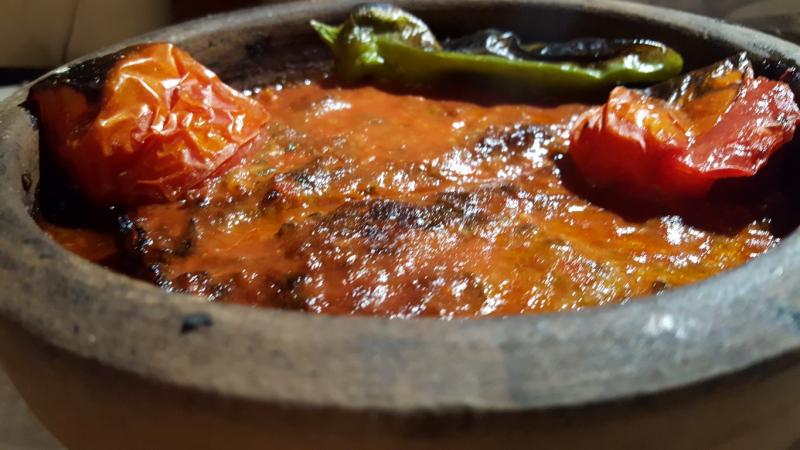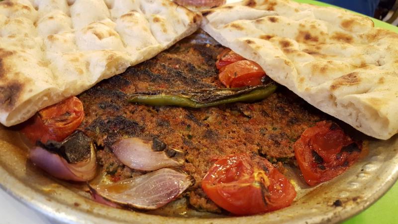 Hemen odamıza giriş yaptık, yedek ayakkabıları giydik, ıslakları klima önüne dizdik ve doğruca Hatay mutfağı ile tanışmaya Konak Restoran’a gittik. Tepsi kebabı, oruk, zeytin salatası, patlıcan yoğurtlama, Lübnan ezmesi bizi bizden aldı resmen.