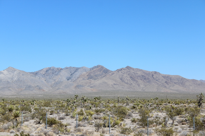 Los Angeles – Las Vegas yolu Mojove Çölü'nde ilerliyoruz. Mojave ÇölüKaliforniya Nevada, Arizona ve Yutan eyaletlerine kadar uzanan Amerika’nın en büyük çölü. Yükselmeye başladığımızda yaklaşık 1.500 – 1.600 metreye ulaştığımızda bölgeye has Cashuaağaçlarını görüyoruz. Cashua kaktüs-ağaç arası bir bitki. Yaprakları dikenli ve çok sert. Etraf çöl ve her yer bu kaktüs cinsi ağaçlarla dolu. Çöl olmasına rağmen burada 2.000 çeşide yakın bitki bulunuyormuş.