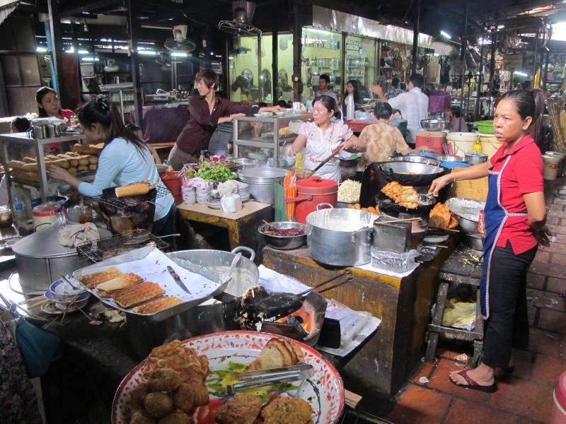 Rus Pazarı (Psar Toul Tom Poung - Russian Market) çeşit çeşit lokal yemek ve tatlıların, bir de taklit aksesuar ve tekstil ürünlerinin satıldığı bir pazar. Lezzetli yemeklerin tadına bakmayı ve tabii ki meyve stantlarından günlük Durian alışverişimizi yapmayı ihmal etmiyoruz.