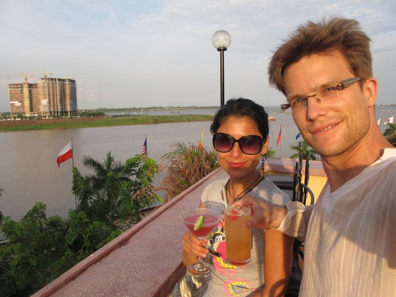 Öğleden sonramızı Ulusal Müze’yi (National Museum) ve Phnom Penh’in en canlı ve büyük pazarı olan Central Market’i gezerek geçiriyoruz. İkindi vakti biraz günbatımı manzarası izlemek umudu ile kendimizi Mekong kıyısındaki cıvıl cıvıl sahil yoluna atıyoruz yine. Burada bulunan FCC (Foreign Correspondents Club)’ın teras katında çok hoş bir bar var, özellikle Happy Hour zamanına denk getirip ziyaret etmeniz şiddetle önerilir. Hava yağmurlu ve bulutlu olduğu için günbatımını izleyemiyoruz buradan ama terasın manzarası yine de çok güzel.