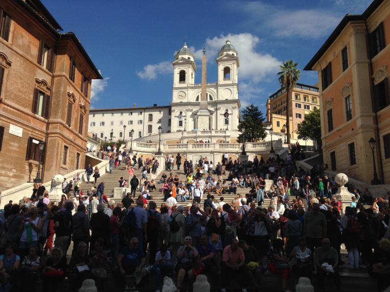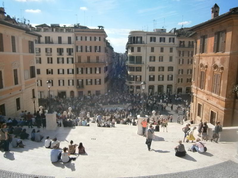 İspanyol Merdivenleri (Spagna) adını burada bulunan İspanya Büyükelçiliği'nden almıştır. Turistlerin özel ilgi gösterdikleri ve merdivenlerine mutlaka oturdukları bir yerdir. İlginin bir diğer nedeni de hemen karşısında bulunan ve merdivenleri Via del Corso caddesine bağlayan, çok ünlü mağazaların bulunduğu cadde Via Condotti'dir. Metro A "Spagna"