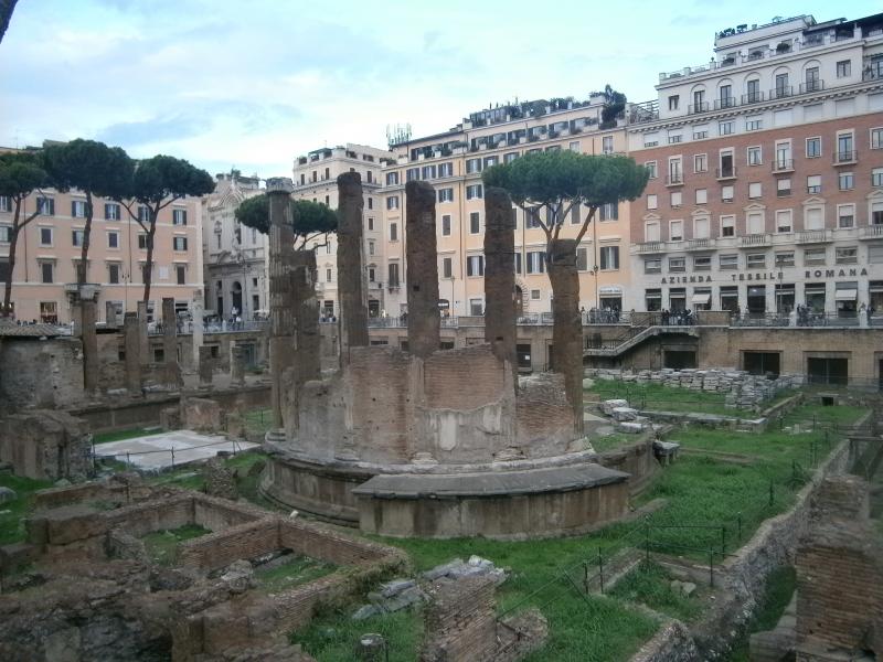 Kiliseden çıkıp sağ kaldırımdan yürümeye devam ediyoruz ve meydana gelmeden önce çok eski dönemlere ait kalıntıların olduğu Largo di Torre Argentina'ya ulaşıyoruz: Emin değiliz ancak sanki kazı çalışmaları halen devam ediyor gibi görünüyor. Size tavsiyemiz buraya gelmişken ve biraz da yorgunsanız, kalıntıların hemen arkasından Tramvay 8 'in ilk durağı var, bu tramvay ile Trastevere Bölgesi'ni (nehrin karşı yakası) gezebilirsiniz. Hatta dönüşte Garibaldi Köprüsü'nde (Ponte Garibaldi) inip Tevere Nehri'nin ortasındaki adacığa da yürüyebilirsiniz.